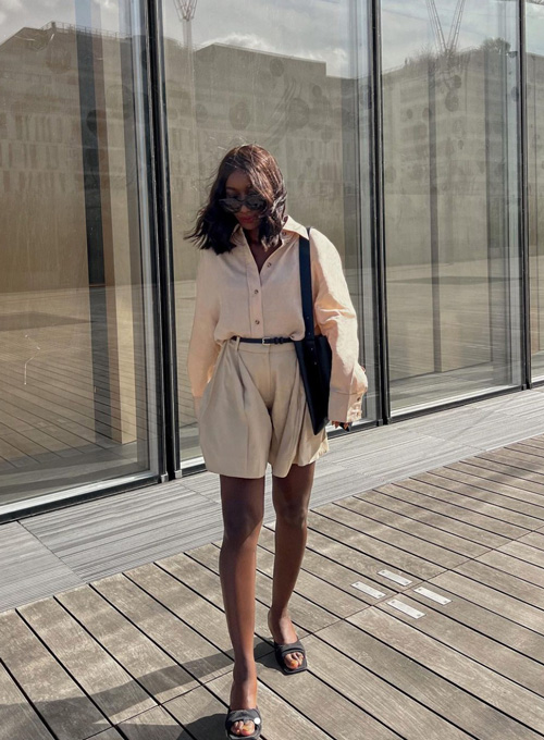 Europe's weekend heatwave precipitated some haute summer looks, all anchored in bare-minimum basics. Makes me want to strip down, too--into crop tops, strapless dresses, flowy shorts, billowy maxis, and slits up to there! The sleek pleated shorts and oversized shirt and voluminous dress, below, are by Cos and the slit skirt is from Coperni. Other simple yet hot-to-trot options: this open-back English Factory, this not-too-cropped Cotton Citizen t-shirt, and this sheer lace L'Agence dress.