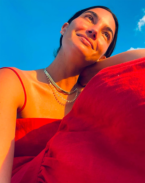 This morning I took a quick trip to the land of warm and sunny via model Lily Aldridge's Instagram account. For the last few days, she's been soaking up the sun and sea--in enviable style. I'm loving her striped Posse swimsuit, above, her Le Kasha knitted dress, her Posse red maxi, and, her Prada bag, which I found on sale here!