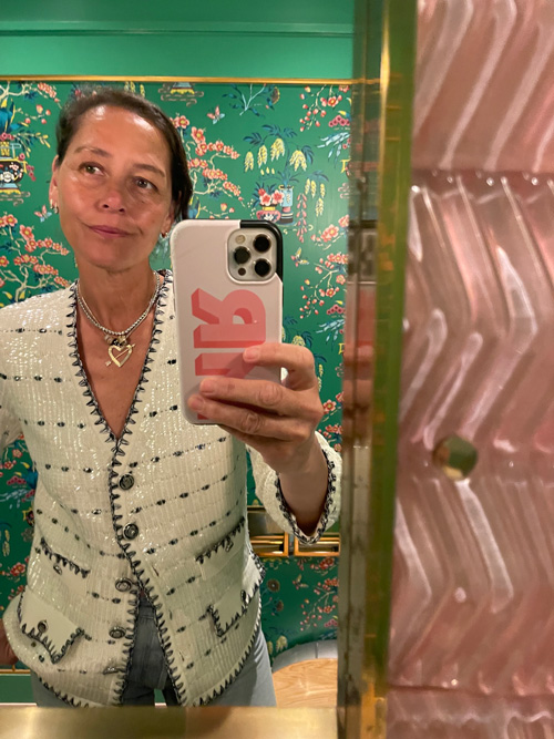 I'm putting some new spring staples to the test this week and I'm happy to report they're holding up quite successfully, as you can glean from these candid snaps here! Above, I'm wearing low-rise Madewell jeans, a sheer (sold out) Zara sweater with pointy-toe Toteme flats and The Row bag. The feather-light Rosewater blouse, below, with a detachable floral pin is going to keep giving throughout summer and same goes for the sequin-flecked Veronica Beard jacket, last pic. The Adina Reyter and Dorsey baubles never come off!